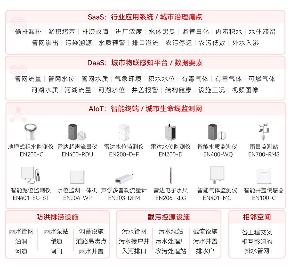 對排水設施(雨污水管網(wǎng)、窨井蓋、截流泵站、提升泵站、抽水泵站、農(nóng)村污水處理站、溢流井、排水井、污水處理廠、調(diào)蓄設施等)關(guān)鍵節(jié)點、易澇積水點,河湖水位、流速,管網(wǎng)液位、流速、水質(zhì),內(nèi)澇積水等指標進行實時數(shù)據(jù)監(jiān)測,形成設施完整、拓撲清晰、位置準確的排水設施“一張圖”,為排水空間規(guī)劃、設計、排水設施改造提供決策支持。
