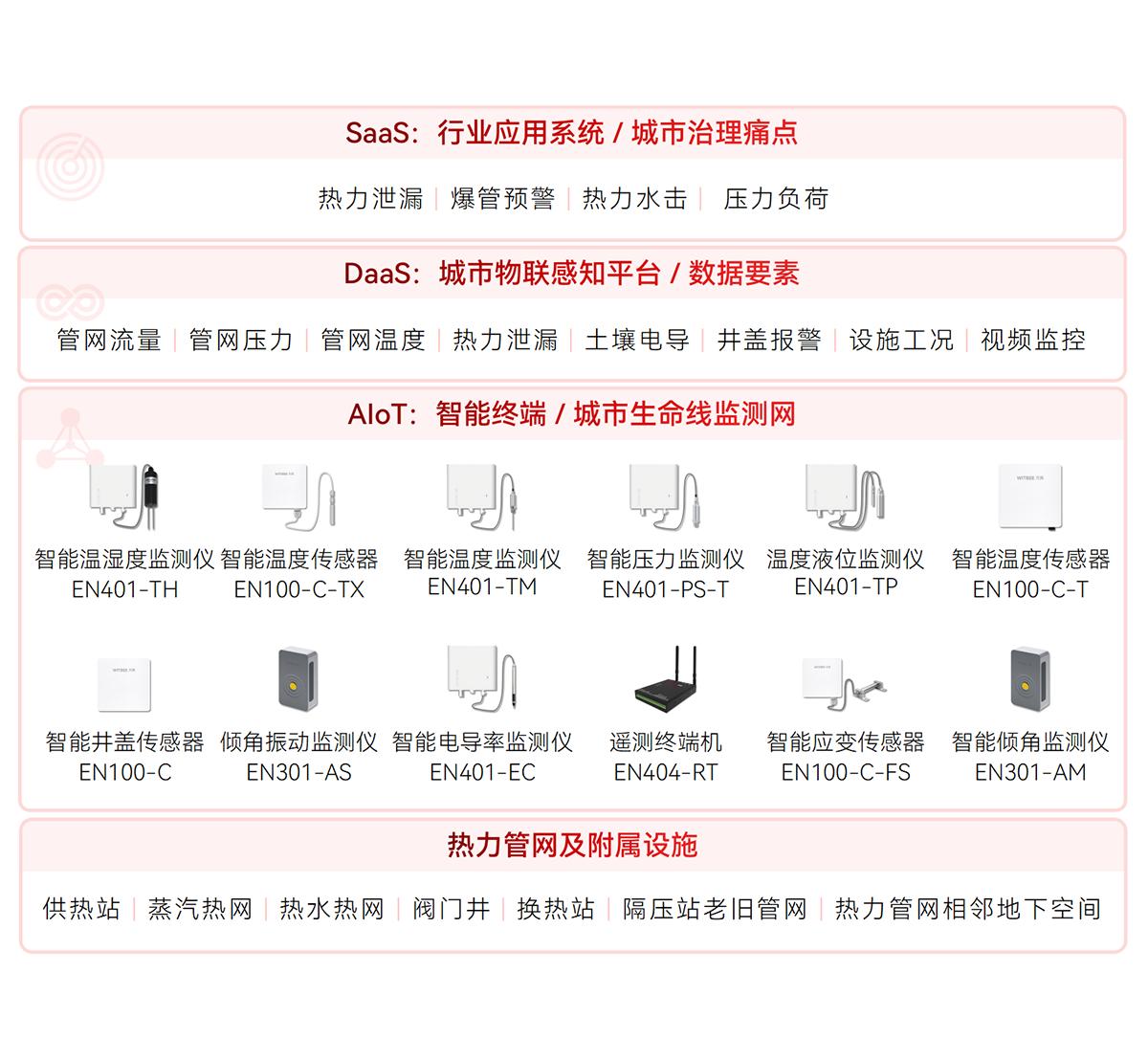 對供熱管網(wǎng)的蒸汽管道排潮孔溫度、疏水箱壓力,熱水管網(wǎng)土壤溫度,管網(wǎng)流量、壓力,井蓋異動等指標進行實時監(jiān)測,構(gòu)建供熱管網(wǎng)綜合管理的動態(tài)監(jiān)測網(wǎng)絡,保證整個城市供熱穩(wěn)定安全運行。